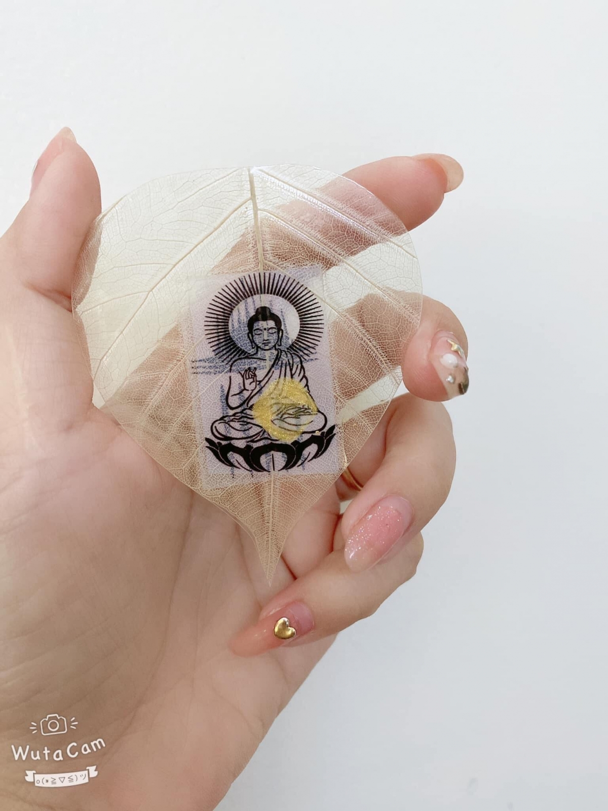 Đây là những chiếc lá bồ đề đc hái tại chùa Vàng, ngôi chùa nổi tiếng nhất tại Thái Lan. Những chiếc lá bồ đề đc hái xuống, xử lý trong môi trường đặc biệt, gắn cuống kim loại , mạ vàng và in hình Phật tổ, sau đó dc sên phép và đc sư thầy trong chùa chì trú.