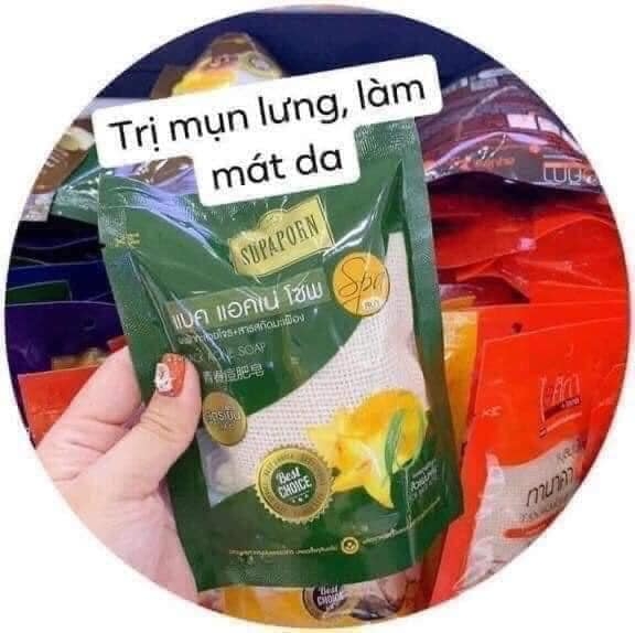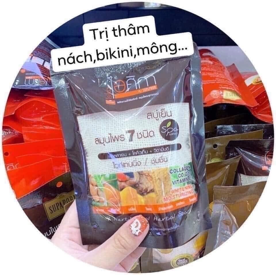 Xà bông tắm trắng chiết suất từ 7 loại thảo mộc của Thái, công dụng chính là làm trắng, trị thâm các vùng nách, bikini, mông.... trị mụn lưng cho ng da dầu. Soap thơm nức mùi thảo mộc tự nhiên, đc bọc trong túi dùng để cọ khi tắm tẩy da chêt lun cực tiện ạ, tắm xong sờ da mướt thích dã man. Công dụng từng loại e ghi lun trên ảnh. Lun là BEST CHOISE VÀ BEST SELLER bên Thái✌????????????????????????????????????????????????????????????