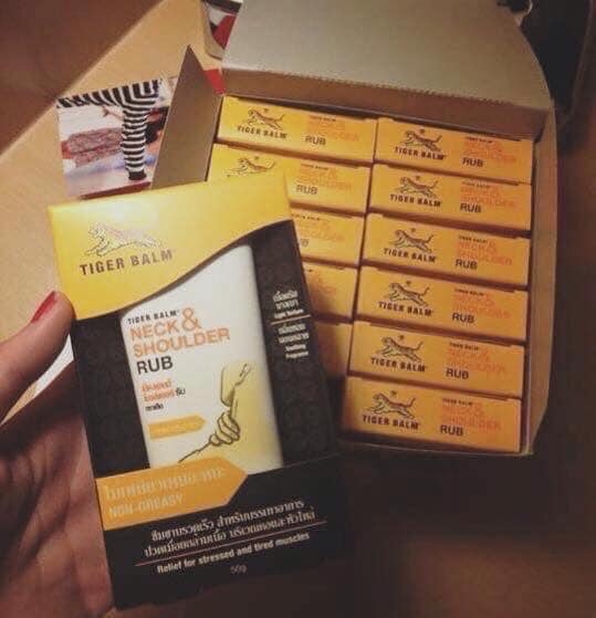 Thần dược Malay nhãn hiệu Tiger Balm, k ai ở Malay mà k biết hãng này ạ. Chuyên về xoa bóp các vùng nhức mỏi lâu ngày do sai tư thế, bưng bê mang vác, cúi, người lao động nặng (ví dụ như em ????)... là k thể thiếu được đâu nhé.