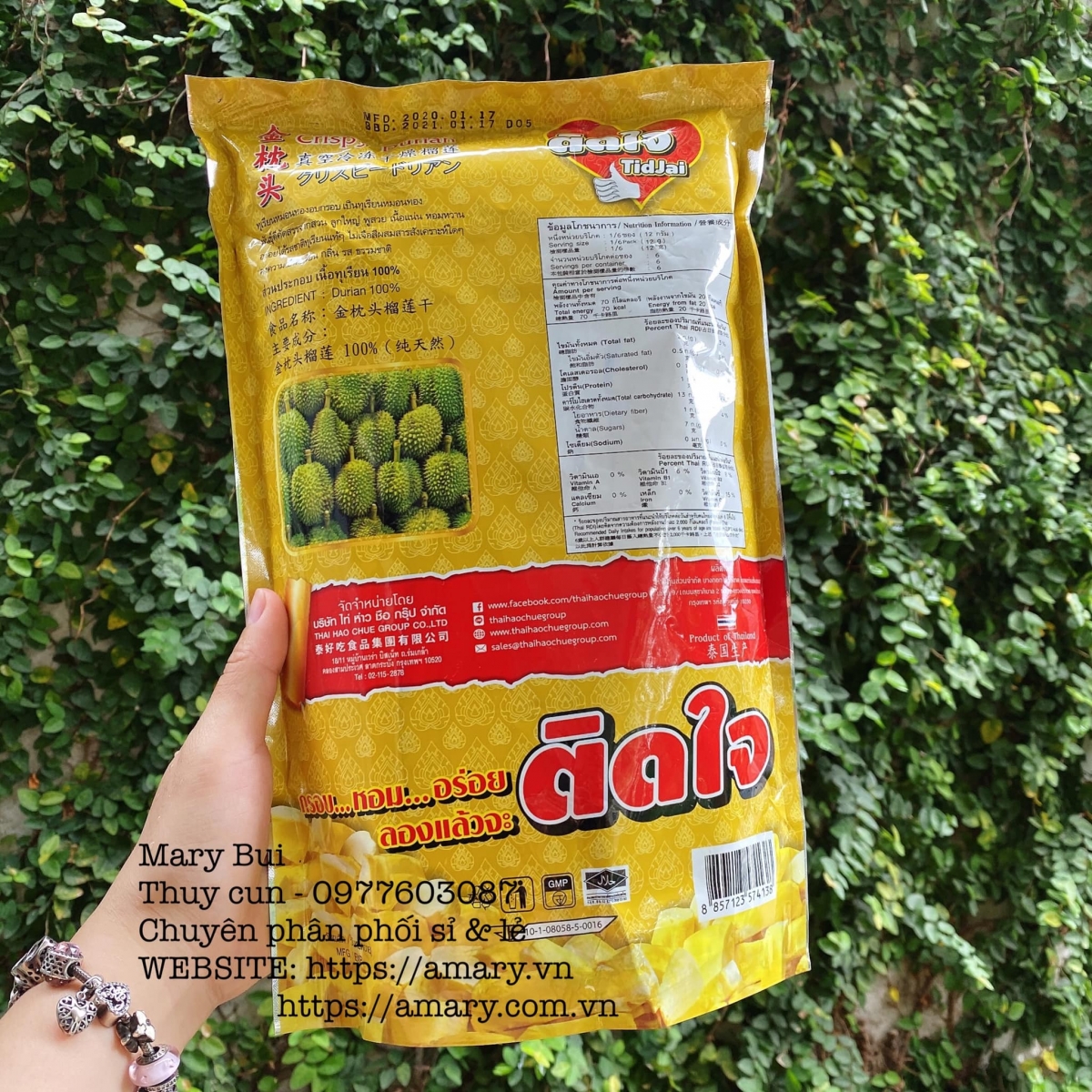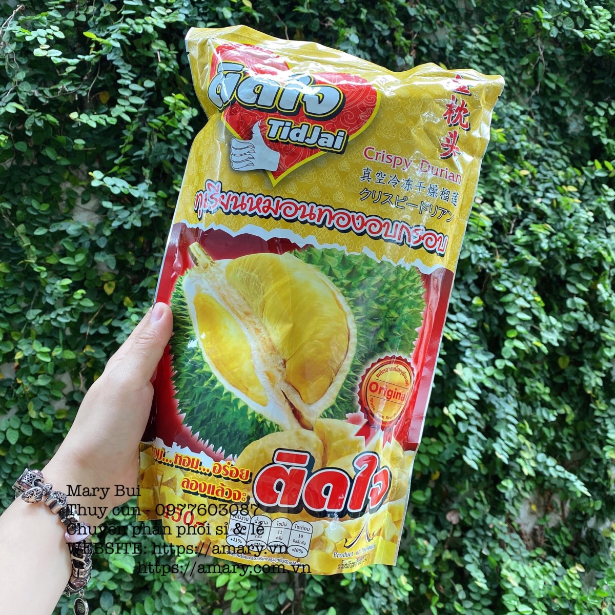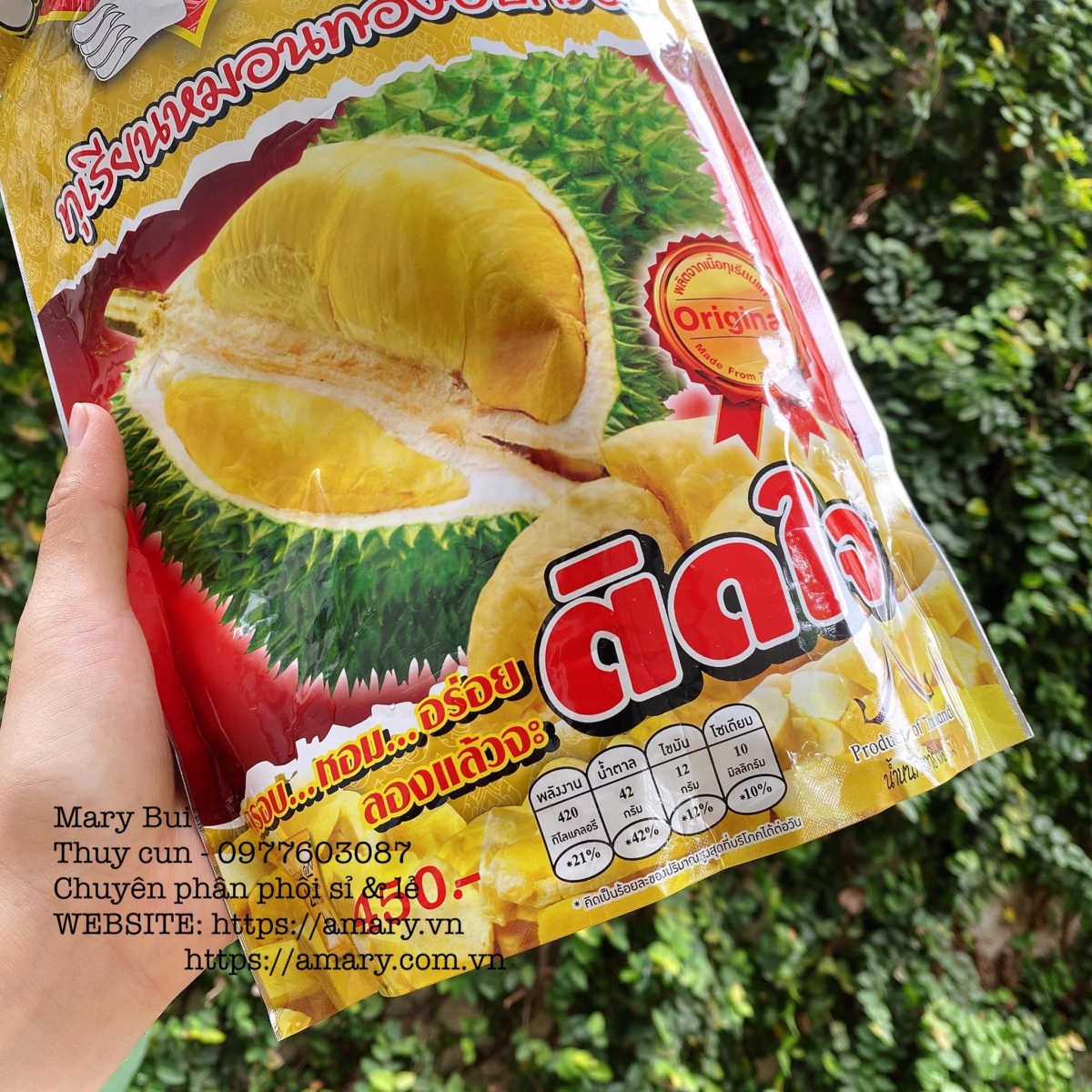 Đây là loại sầu riêng ngon nhất trong tất cả các loại mà e đã từng ăn , sầu riêng sấy Thái Lan vô số thương hiệu và giá cũng chênh lệch rất nhiều , nhưng cái nào thật sự ngon thì e mới dám quảng cáo nhé , e là chùm đạo sầu riêng đây và sau khi thử nhiều loại e chấm ngay loại này , mùi rất thơm và vị béo y chang như đang ăn muối sầu riêng luôn đó ạ , vì đây sầu riêng nguyên chất sấy ra nha khách , 1 bịch to đùng lunn.